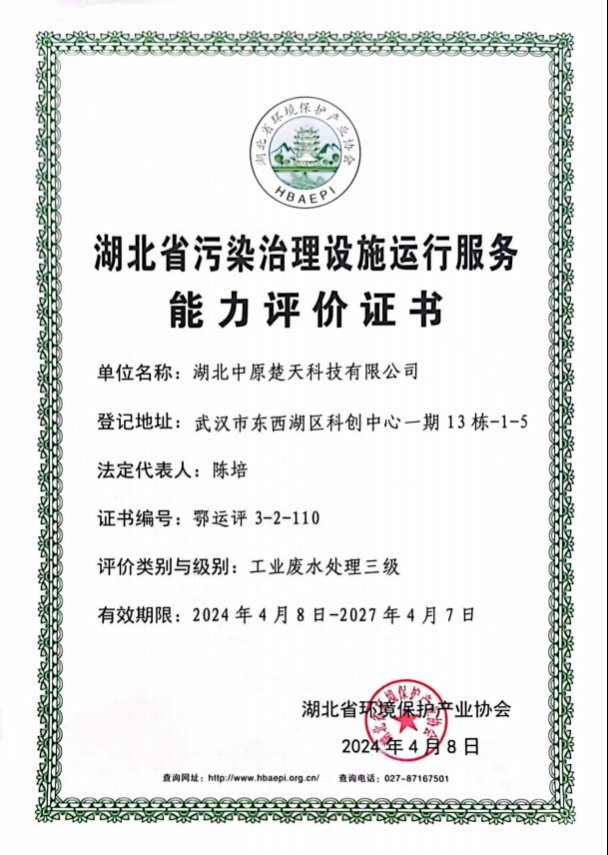 工業(yè)廢水處理證書